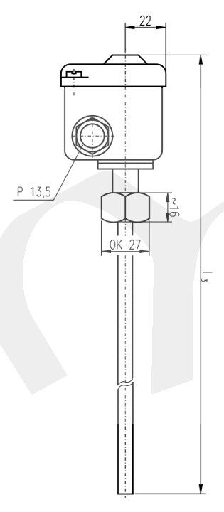 Teplotně citlivý element je stonek termostatu, tvořený u TH140 a TH143 dilatující mosaznou, u TH141 a TH144 antikorozní trubkou. Teplotní dilatace trubky se přenáší invarovou tyčí přes pákový převod na spínací mechanismus, který je umístěn v hlavici. Regulační knoflík pro nastavení žádané teploty je rovněž uzavřen v hlavici a lze jej zaaretovat, aby nedošlo (např. vlivem otřesů) k přestavení vypínací teploty. Termostat TH140ZP16 je pevně nastaven ve výrobním závodě podle požadavků zákazníka. Pro připevnění termostatu v regulovaném prostředí slouží převlečná matice na stonku termostatu.