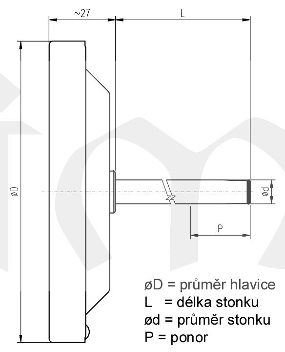 Teploměry do délky stonku 400mm mají průměr stonku 8mm, pro délky stonků 630,1000 a 1500mm je průměr stonku 10mm.