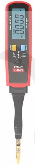 Tester UT-116A je zařízení pro testování elektronických součástek v provedení SMD pájené povrchovou montáží. Na čtyřmístném displeji s rozsahem 3000 je možné zobrazit napětí do 36V, odpor do 30MΩ, kapacitu do 30mF, je možné také provádět test diod, i Zenerových a také test spojitosti obvodů se signalizací odporu menšího než 30Ω.