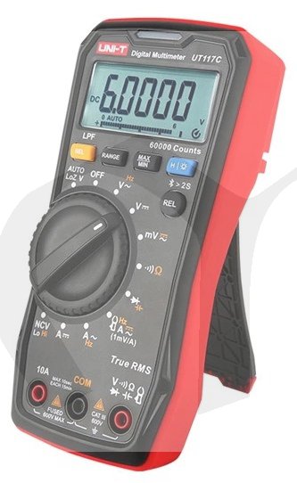Multimetr UT-117C Vysoce přesný digitální multimetr True RMS. který má měření napětí AC/DC 600V, měření proudu 10A AC/DC, měření LPF, funkci Bluetooth atd. Hlavními rysy jsou rychlá odezva, vysoká přesnost, malé rozměry a snadná obsluha a přesnost produktu lze zaručit i po pádu z 2 metrů. Je to dobrý nástroj pro elektrikáře. UT 117C je vybaven digitálním LCD displejem, ochranou proti přetížení ve všech rozsazích a jedinečným vzhledem.