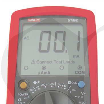 Digitální multimetr UT-58C se zdokonalenou konstrukcí, novým designem, velkým displejem. Je opatřen obalem ze stříkané měkké pryže, není nutné další pouzdro.
