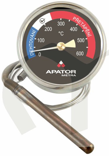 Kapilární teploměr spalin TKS je určen pro přímé měření teploty spalin v kouřovodu krbových vložek a dalších topných zařízení, u kterých není ke kouřovodu přímý přístup. Teploměry mají teplotní rozsah 0..+600°C.