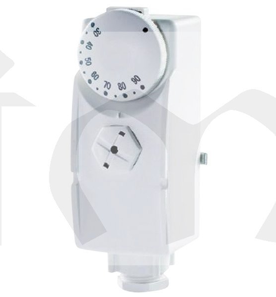 Příložný termostat, vhodný zejména pro nastavení teploty vody v potrubí topných zařízení, zároveň jej lze využít k ovládaní oběhového čerpadla.