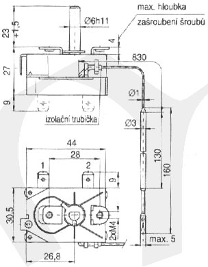 Montáž RT se provádí dvěma šrouby M4.