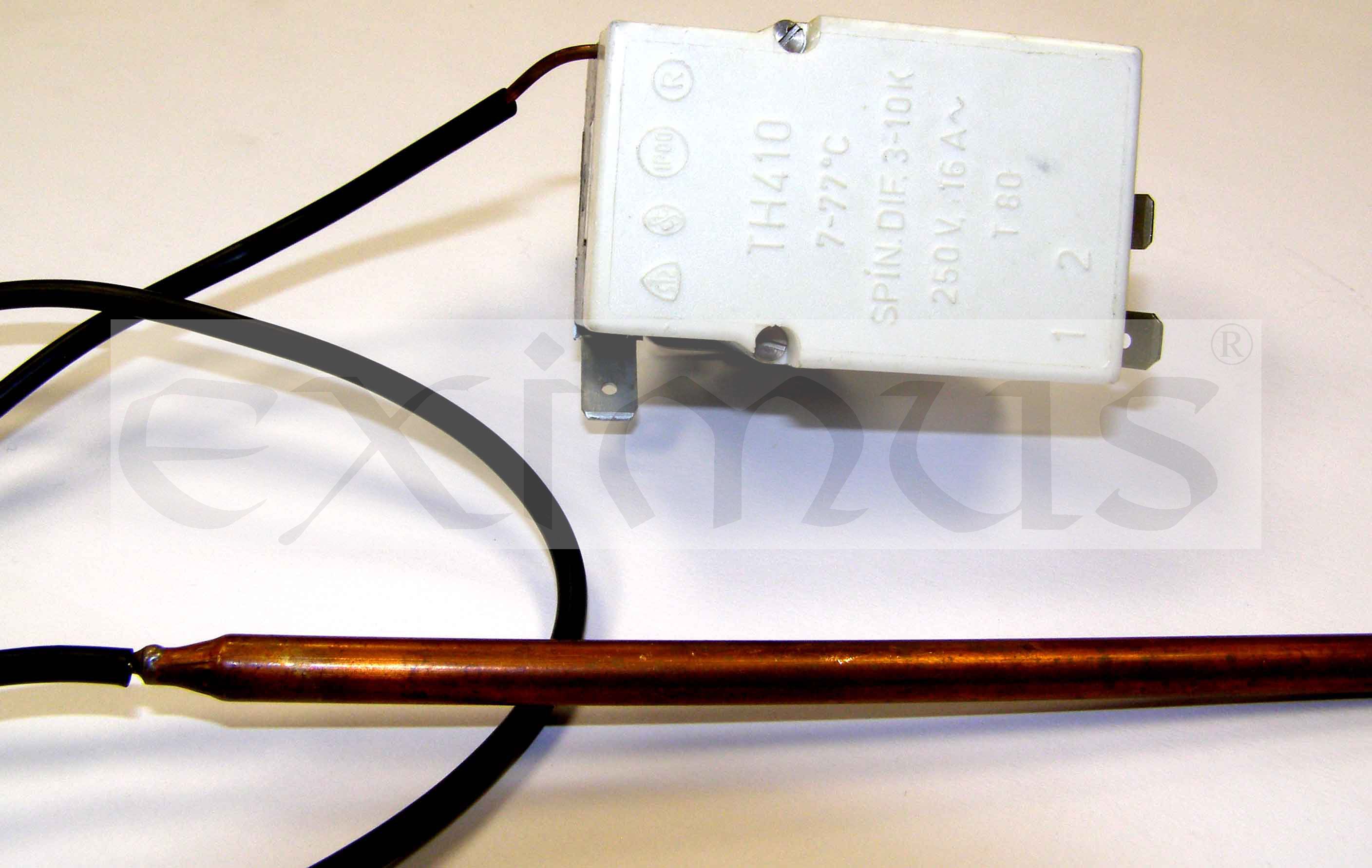 TH410 je jednopólový kapilární termostat založený na principu dilatace kapaliny. Skládá se ze spínací hlavice a kapilární sestavy. Ve spínací hlavici je mžikový spínač s plochými kolíky 6,3 (ČSN 34 0425) pro připojení přívodních vodičů.