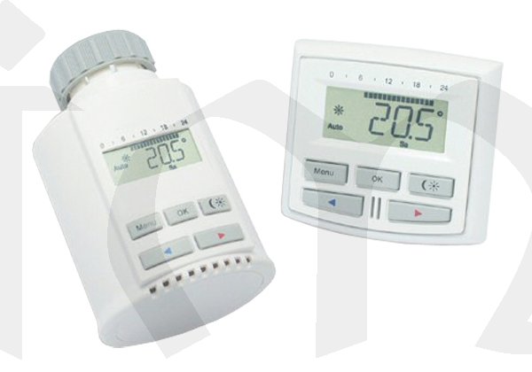 Termostatická hlavice s bezdrátovým řízením. Velice jednoduchá instalace hlavice přímo na ventil radiátoru místo stávajícího "kolečka". Řídící jednotku (vysílač) umístíte jednoduše v objektu. V sadě jsou tři redukce Danfoss pro různé ventily.