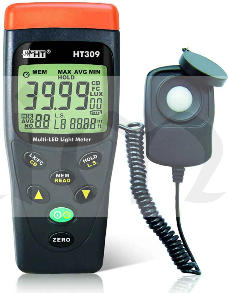 Přístroj HT-309 je přesný digitální luxmeter, především pro měření intenzity osvětlení jak bílého světla tak i zdrojů LED nejrůznějších barev, intenzitu vyhodnocuje v luxech (lx) nebo footcandlech (Fc).  Čidlo z HT 309 je k přístroji připojeno pomocí kabelu spojovací vedení s přístrojovém a je volně používáno pro přesné měření intenzity světla.