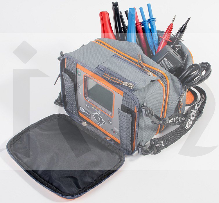 • Balení obsahuje přístroj MIC-2501, mměřící kabely, bezpečnostní měřící hroty, bezpečnostní krokosvorky (kleště), USB kabel, 4-bodové popruhy, síťovou nabíječku, software Sonel Reader na přenos dat z vnitřní paměti přístroje do PC a kalibrační list od výrobce. Všechny tyto položky jsou uloženy v praktické dělitelné brašně.