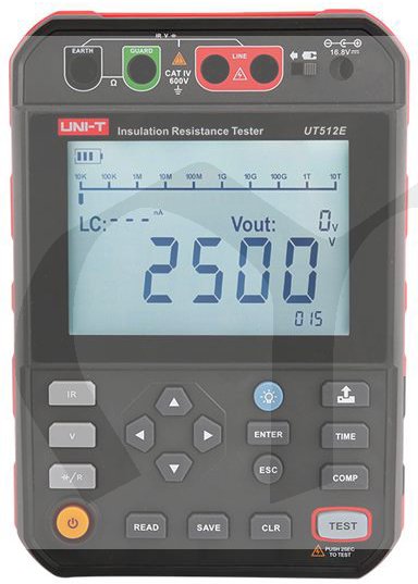 Tester izolačního odporu UT-512E 2,5kV , je digitální vysokonapěťový tester izolačního odporu, navržený s několika rozsahy včetně 250 V, 500 V, 1000 V, 2500 V.