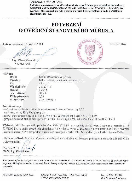 Popis parametrů měřících transformátorů proudu Nadproudové křivky chyb nízkonapěťových měřících transformátorů proudu a schéma zapojení |