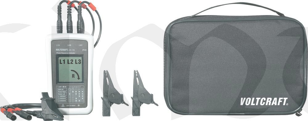 Zkušební přístroj pro automatickou kontrolu sledu fází a směru střídavého pole vnějšího vedení v průmyslových elektroinstalacích.