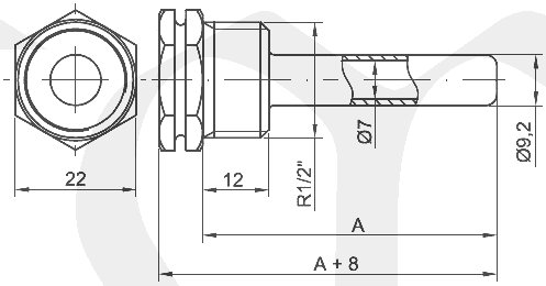 - vnitřní průměr jímky je pouze 7mm nelze použít na bimetalové teploměry řady TR, TU, DTR, DTU ...