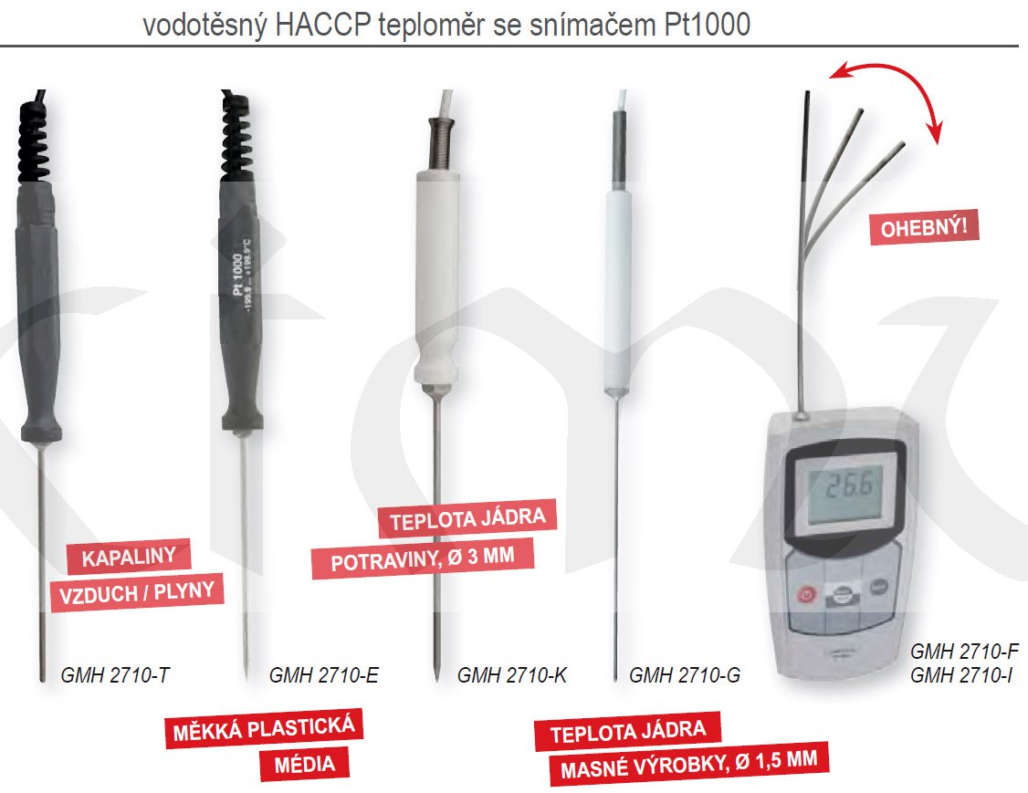 GMH2710-E - teploměr HACCP včetně zapichovacího snímače Pt1000, 2-vodič, izolovaný, vodotěsný a parotěsný,