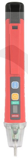 Bezkontaktní detektor střídavého napětí UT-12D-EU se zabudovanou svítilnou a akusticko-optickou synchronní výstražnou funkcí. Široce se používá při údržbě nízkonapěťových zařízení, jako jsou vodiče, kabely, zásuvky a další elektrické / elektronické přístroje. Je to velmi užitečný nástroj pro elektrikáře. Pouze umístěte hlavu senzoru do blízkosti testovaného objektu nebo do zásuvky s AC napětím. Při detekci střídavého napětí se rozsvítí červená LED na špičce a spustí se bzučák. Frekvence bzučáku a detekční LED se zvyšují, když se detektor přiblíží k testovanému objektu.