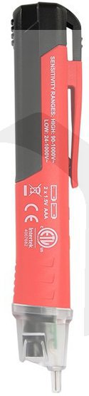 Bezkontaktní detektor střídavého napětí UT-12D-EU se zabudovanou svítilnou a akusticko-optickou synchronní výstražnou funkcí. Široce se používá při údržbě nízkonapěťových zařízení, jako jsou vodiče, kabely, zásuvky a další elektrické / elektronické přístroje. Je to velmi užitečný nástroj pro elektrikáře. Pouze umístěte hlavu senzoru do blízkosti testovaného objektu nebo do zásuvky s AC napětím. Při detekci střídavého napětí se rozsvítí červená LED na špičce a spustí se bzučák. Frekvence bzučáku a detekční LED se zvyšují, když se detektor přiblíží k testovanému objektu.