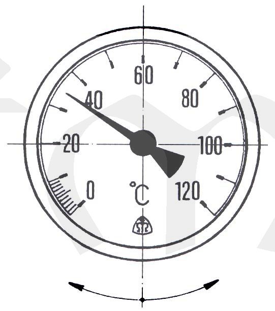 Teploměr  se skládá z tělesa, ve kterém je uložen číselník s ukazatelem a z kalíšku, ve kterém je uložen dvojkovový měřicí systém. Na zadní straně tělesa je natrvalo upevněna otočně uložená spona pro natlačení teploměru na potrubí rozměru Js 3/8" a 1/2" (menší - dělená) nebo rozměru 3/4" a 1". Otočné uložení spony umožňuje libovolné natočení teploměru. Pro trubky rozměru Js 5/4", 6/4" a 2" je teploměr vybaven otočným držákem s tažnou válcovou pružinou, kterou je trubka opásána. I toto provedení umožňuje libovolné natočení teploměru. Každému rozměru trubky odpovídá hliníkový teplovodný kroužek, který je součástí dodávky teploměru, příp. je dodáván jako zvláštní příslušenství. Před umístěním teploměru na trubku je nutno teplovodný kroužek nasunout na čep v zadní části teploměru.