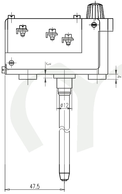 Termostaty se skládají ze dvou hlavních částí: teplotního čidla a spínací hlavice. Dilatační změny čidla se přenášejí prostřednictvím páky na spínač. Termostaty se vyrábí v provedení rozpínacím (2 svorky) nebo přepínacím (3 svorky). Svorky jsou šroubové s možností připojení vodičů s max. průřezem 4 mm. K ochranné svorce musí být připojen ochranný vodič. Standardní provedení je opatřeno krytem svorek pro zabránění náhodného dotyku. Požadavek na provedení bez krytu svorek musí být uveden v objednávce.