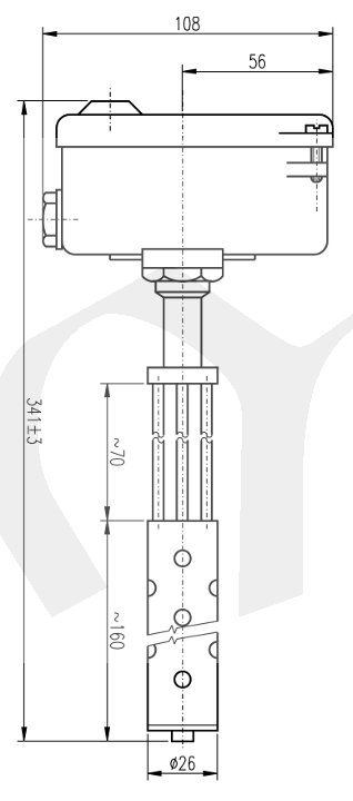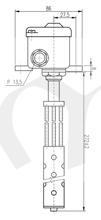 Teplotně citlivý element je stonek termostatu, tvořený dilatující trubkou z antikorozní žáruvzdorné oceli. Teplotní dilatace trubky se přenáší invarovou tyčí přes pákový převod na spínací mechanismus, který je uzavřen v hlavici. Regulační knoflík k nastavení teploty je rovněž uzavřen v hlavici a lze jej zaaretovat, aby vlivem otřesů nedošlo k přestavení vypínací teploty. Pro připevnění termostatu slouží 2 patky s otvory pro šrouby. Při montáži nesmí být stonek mechanicky namáhán a musíbýt uložen tak, aby mohl dobře dilatovat. Termostat může být umístěn v libovolné poloze. Termostat je opatřen kabelovou ucpávkou P 13,5.