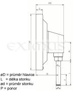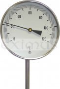Teploměr se skládá z hlavice a stonku vyrobených z ušlechtilé oceli tř.17. Pro méně náročné aplikace je stonek od délky 630mm zhotoven z nelegované oceli s povrchovou úpravou Zn. V hlavici je upevněn ukazatel s číselníkem a stonek, v němž je upevněn měřicí systém. Tento systém je zhotoven z dvojkovu ve tvaru válcové spirály, která se působením tepla otáčí kolem své osy. Pohyb je přenášen na ukazatel, který vykazuje určitou výchylku udávající teplotu na stupnici. Aby údaje teploměru byly správné, je nutno při zabudování zajistit, že celý měřicí systém bude ponořen v měřené teplotě. Doporučená hloubka ponoru P je alespoň 60mm, pro rozsah 0-350°C minimálně 80mm. Teploměry s rozsahem 0 až 350°C a 0 až 450°C se nesmějí používat bez jímky.