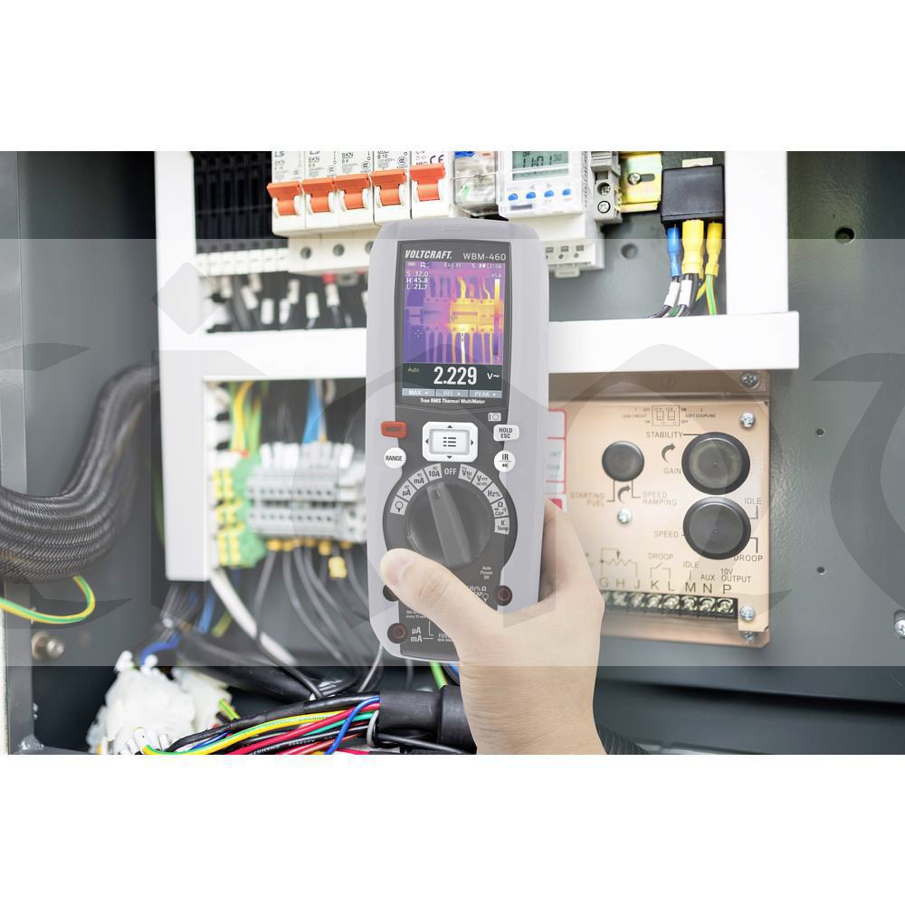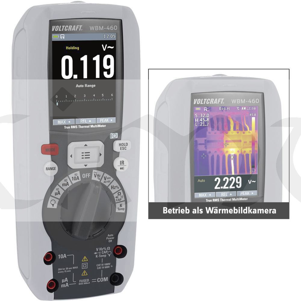 Termomultimetr Voltcraft WBM-460 je nepostradatelným nástrojem pro řemeslníky, automatizační techniky a elektrotechniky, protože je ideální pro přesnou diagnostiku v terénu. Termomultimetr Voltcraft WBM460 spojuje dva přístroje v jednom, takže nemusíte používat žádná další zařízení. Pomocí jediného přístroje můžete měřit a zobrazovat hodnoty proudu, napětí, odporu a pořizovat i zobrazovat termosnímky. Ušetříte tak místo a čas!