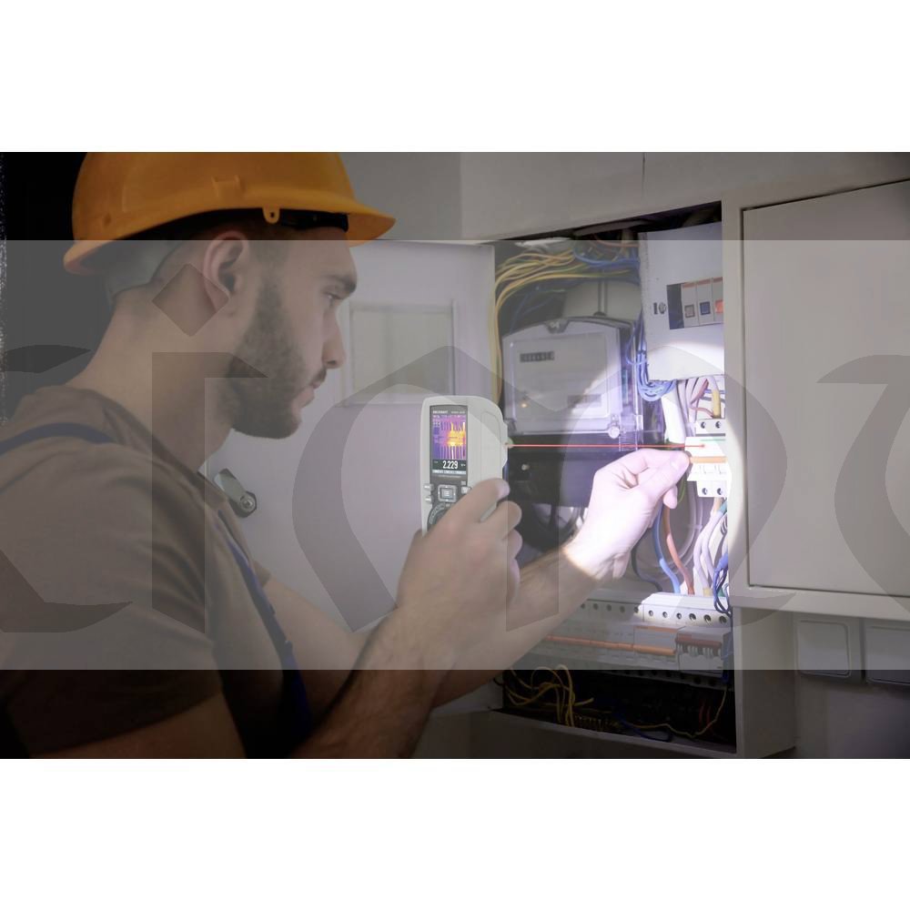 Integrovaná termokamera ukazuje rychle a snadno teplotní anomálie a problematická místa. Měření teploty je bezdotykové. Díky tomu jste v bezpečí především při měření teploty u zařízení, kterých se nelze bezpečně dotknout, jako jsou např. vysokonapěťová zařízení a transformátory, nebo u dílů, jako jsou pojistky, kabely, konektory a spínače.