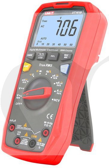 Řada multimetrů UT 161 je řada vysoce spolehlivých, bezpečných, odolných a přesných multimetrů, které mají certifikát CE a jsou vhodné pro evropský trh. Displeje těchto multimetrů jsou podsvícené LCD (tmavé údaje na světlém pozadí) s počtem míst ±6000 (pro UT161B a UT161D) a ±22000 pro UT161E. Displeje mají obnovovací frekvenci 2 - 3x za vteřinu, obsahují také analogový sloupec se 31 segmenty (UT161B a UT161D) nebo 41 segmenty (UT161E). Multimetry měří AC i DC napětí do 1000V a jsou vybaveny zvukovým a optickým varováním při dosažení maximálních hodnot napětí / proudu, příp. teploty. Umožňuje bezkontaktní detekci vodičů s AC napětím. V balení je obsažen USB kabel s optoelektrickým převodníkem pro přenos dat do PC. Napájení je čtyřmi kusy mikrotužkových baterií AAA (R03) a přístroj se automaticky vypíná po 15ti minutách nečinnosti (funkci lze dočasně vypnout). Jištění proudových vstupů je provedeno trubičkovými pojistkami a pojistky je možné testovat bez otevření přístroje.