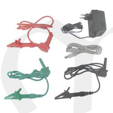 baterie, anglický a český manuál, plastový kufřík, USB kabel, CD s ovladači