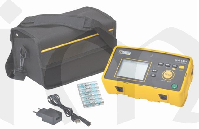Měřič uzemnění C.A 6424, přepravní brašna, 6 baterií NiMH, napájecí adaptér USB 2A, napájecí micro USB kabel, návod k obsluze.
