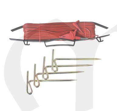 testovací kabely s krokosvorkami (s dvojitou zástrčkou 1x, s jednoduchou zástrčkou 1x), testovací kabely s krokosvorkami ( 40m červený, 20m červený, 10m žlutý, 5m zelený), zemní sondy 2x, pouzdro, kufřík, návod