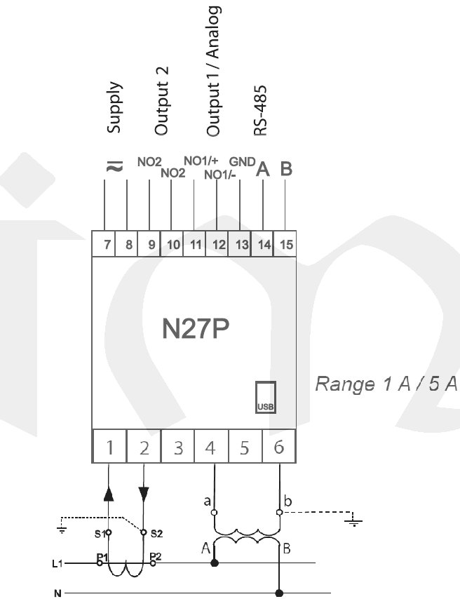 N27P-1100E0, x/1/5A, 2relé, RS485