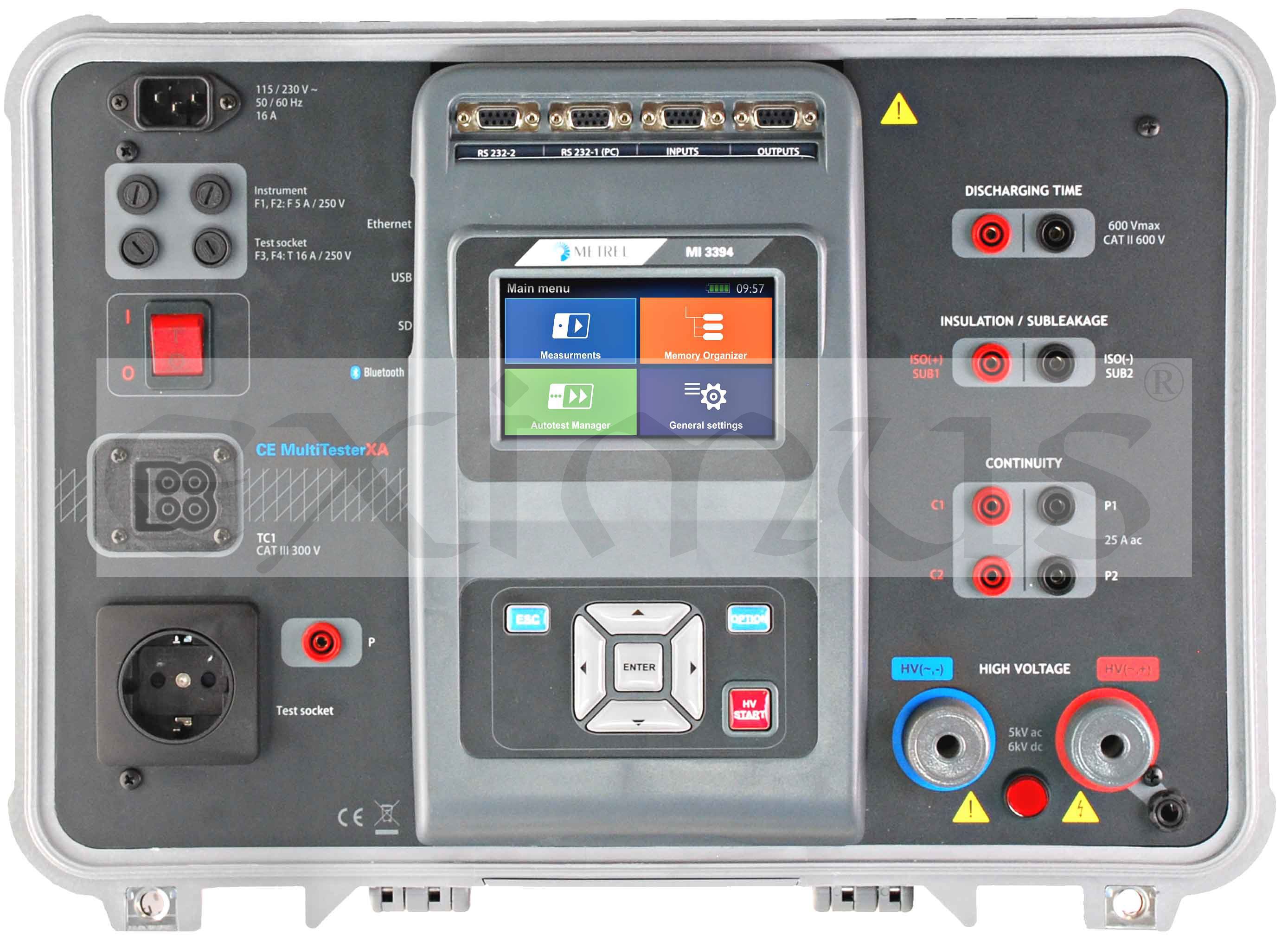 MI-3394 CE MultiTesterXA je přenosné zařízení určené pro testování elektrické bezpečnosti a CE certifikaci elektrických spotrebičů, strojů a rozváděčů v procesu výroby. PC software MES-Manager umožňuje upload automatizovaných testovacích postupností, projektů a stáhnutí výsledků do PC, jejich uložení a tisk protokolů z měření.