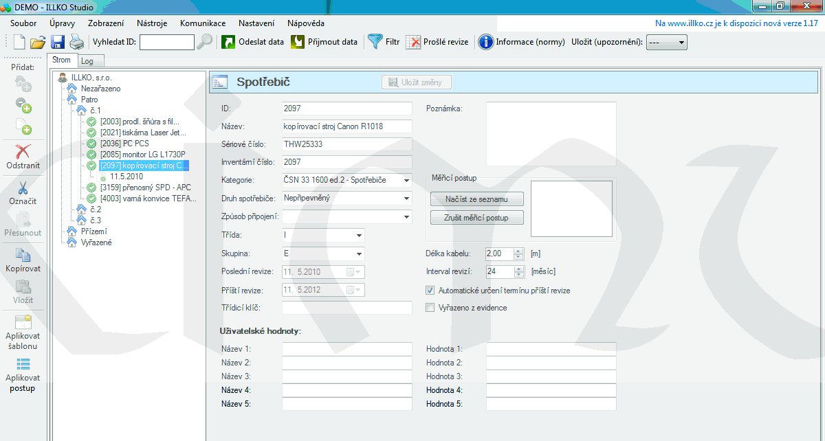Pro usnadnění a zvýšení produktivity práce při vykonávání revizí elektrických spotřebičů je k přístroji REVEXmax dodáván i PC software SWillkostudio určený k vedení databáze spotřebičů, vyhodnocování jejich kontrol a tisku protokolů o provedených kontrolách (obr. 3).