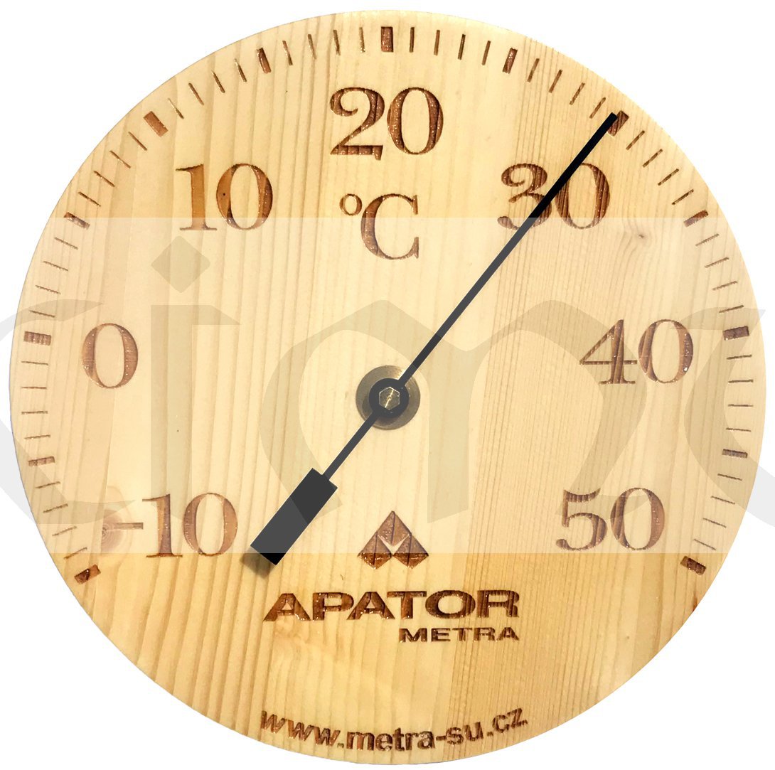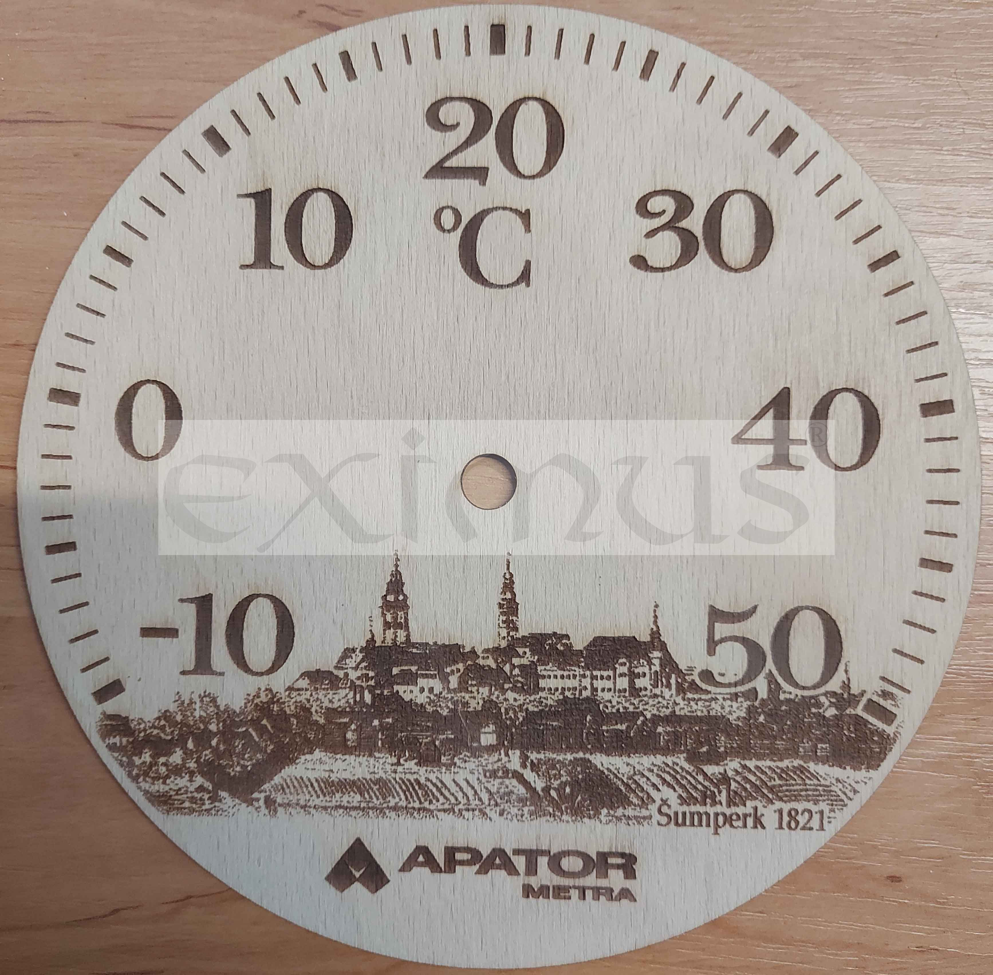Nástěnný teploměr dřevěný kompozit s potiskem je určený pro měření teploty v interiéru.