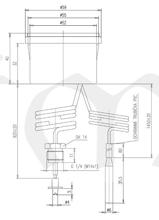Přípojné rozměry čidla M14x1  nebo  G1/4"