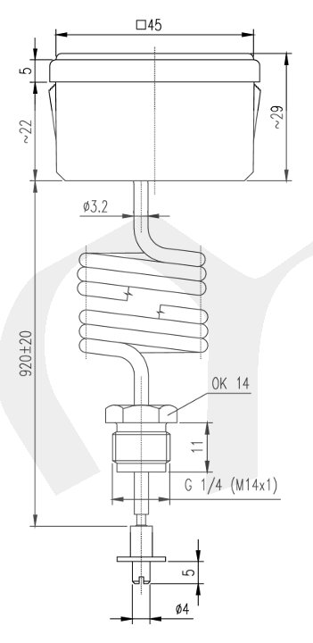 | Čidlo procesní připojení | M14x1 nebo G1/4" |